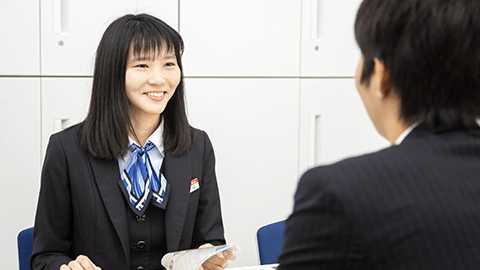 人の役に立つ仕事がしたいと思い、インフラ業界を志望していました。通学で岐阜バスを利用していた時に、運転士さんがお客様一人ひとりに対して、丁寧にお礼をしていて好感を持っていたのも、決め手の一つでした。私は運行管理から出務表※の作成、お客様の窓口対応まで幅広く担当しています。事務所内での仕事も多く、一般的な事務職と似ているところもありますが、忘れ物の問い合わせや窓口でお客様と直接やり取りすることも少なくありません。忘れ物の財布やスマホなど、お客様にとって大切なものが無事に見つかり、「ありがとう」と喜んでいただけるのは嬉しいですね。