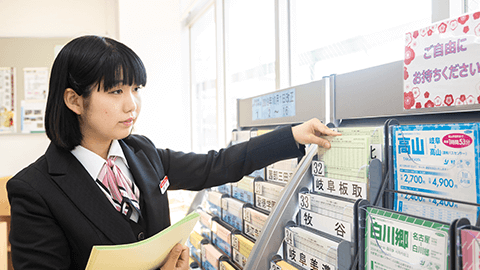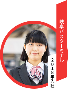 生まれも育ちも岐阜市の私にとって、バスと言えば岐阜バスというくらい身近な存在でした。今担当しているのは「JR岐阜駅」「名鉄岐阜駅」の構内にある路線バスの案内窓口でのご案内や、お客様の電話対応など。毎日多くのお客様と接しますが、どのように伝えれば分かりやすいかを常に考え、工夫を心がけています。目標は、お子様からご年配のお客様まで、どなたにとっても分かりやすい説明をすること。工夫の一つとして、言葉で伝えるだけでなく行先や運賃などを書いたメモをお渡しすることもあります。それに対して、お客様から「ありがとう」と言っていただけるとやりがいを感じますね。