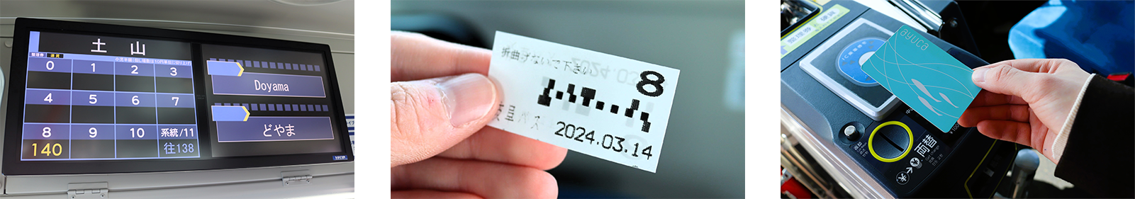 ・岐阜バスでは、ICカードayucaおよび、manacaをはじめとする全国交通系ICカードがご利用いただけます。(一部の路線を除く)