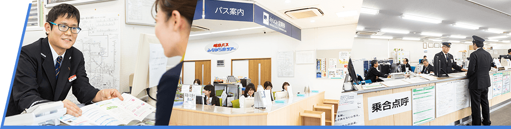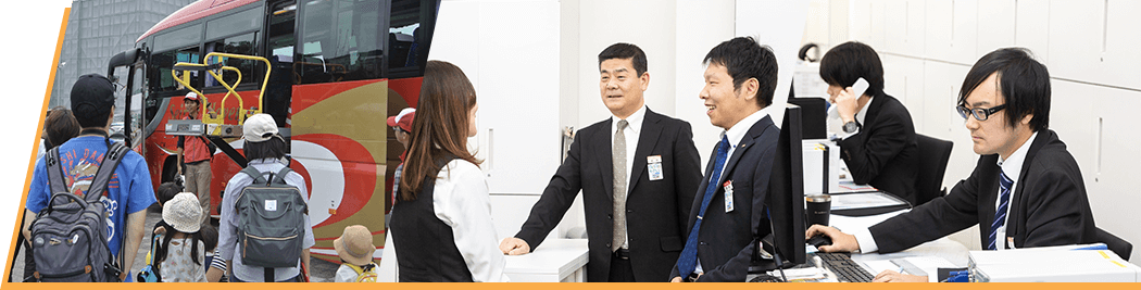 | ー バス営業部 | バスダイヤの作成、バス停の新設・移設、交通規制対応、イベント時のシャトルバス計画などバス運行の統括業務を行います。シャトルバス運行時には、最前線でお客様へのご案内業務を行うなど、デスクワークだけでなくアクティブな仕事も担います。 |